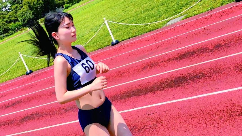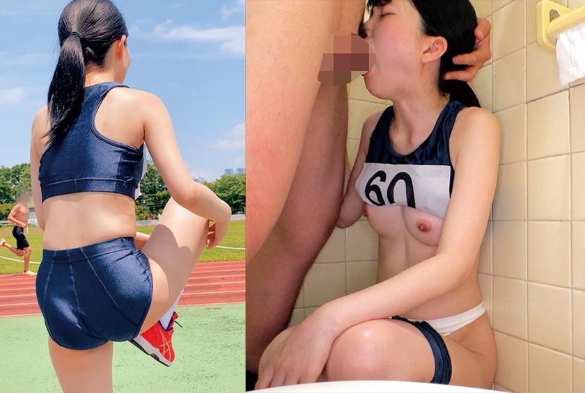 Tight body, small long distance athlete peeking and observing ↓changing into competition wear in...