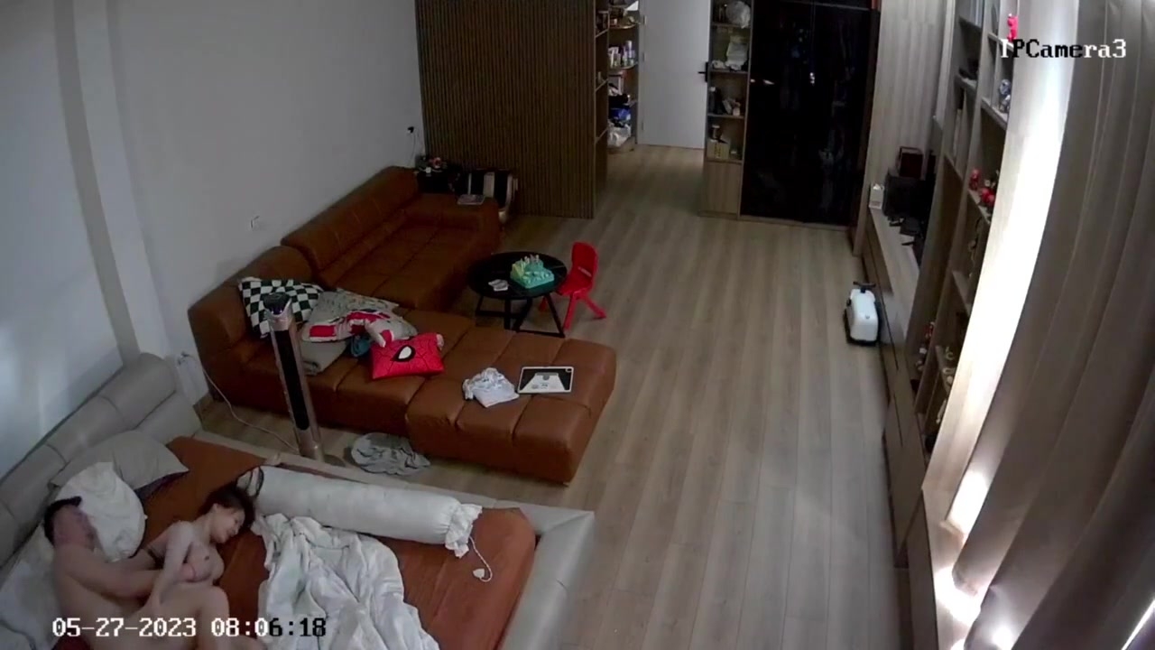 ハッカーが自宅のウェブカメラをハッキングし、兄とスリムで美しい嫁がさまざまな体位で喘ぎ、うめき声をあげる様子を撮影。