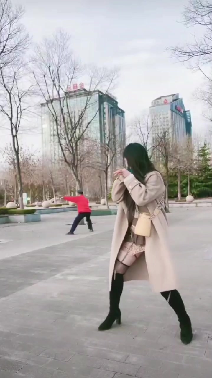 広場で太極拳をしていた美しい女性が、後ろにいた老人に見つかりそうになった。