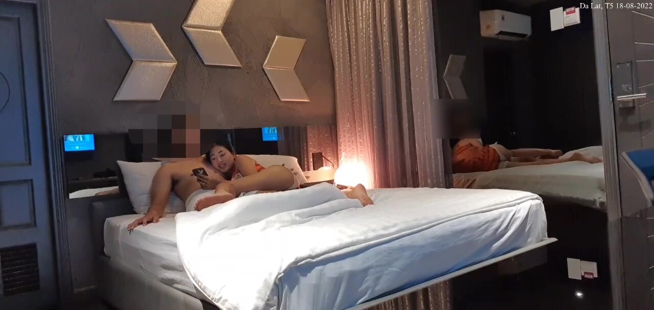 [Foto Berterus-terang di Hotel Berpasangan] Selepas bersetubuh di atas katil hotel dengan paras...