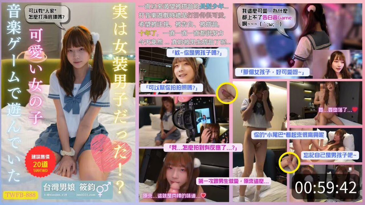 #洪筱鈞 #伪娘筱鈞【偽娘成人片 TWFB-888】玩音樂遊戲可愛女子,竟然是女裝男子!百幹屌維鮮01