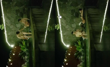 【真實夫妻探花】,夜深人靜之時,良家夫妻約單男,泳池內激情3P