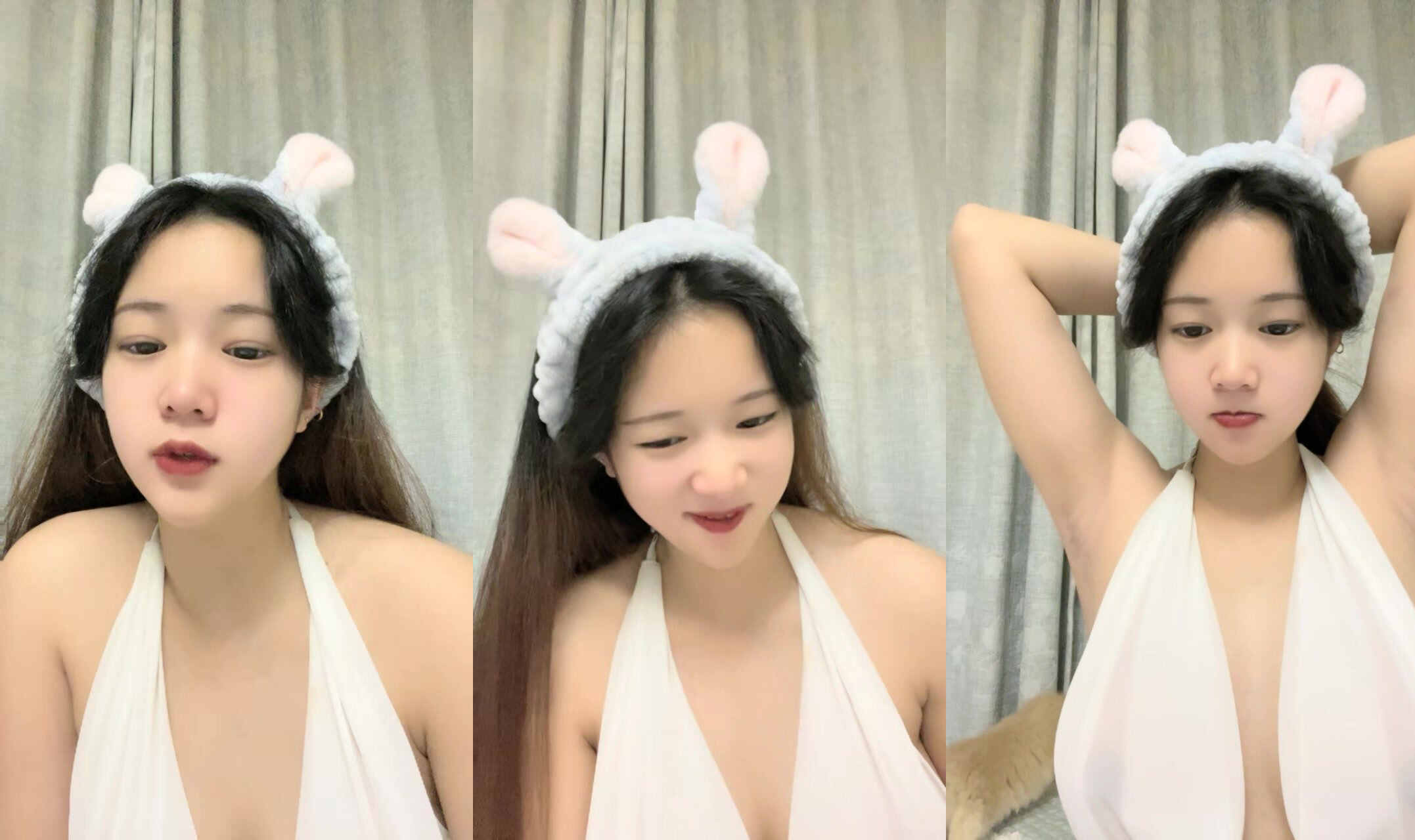 Váy dạ hội ống trắng, váy ngắn, cực kỳ sung sướng, mông trắng to lộ ra, bộ ngực lớn đầy đặn, một đường lông mỏng lộ ra ở bên hông, đạo cụ được đưa vào lỗ hồng