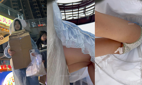 偷拍大神四處尾隨偷拍美女裙底風光 牛仔連衣裙小姐姐白色半透明蕾絲內褲