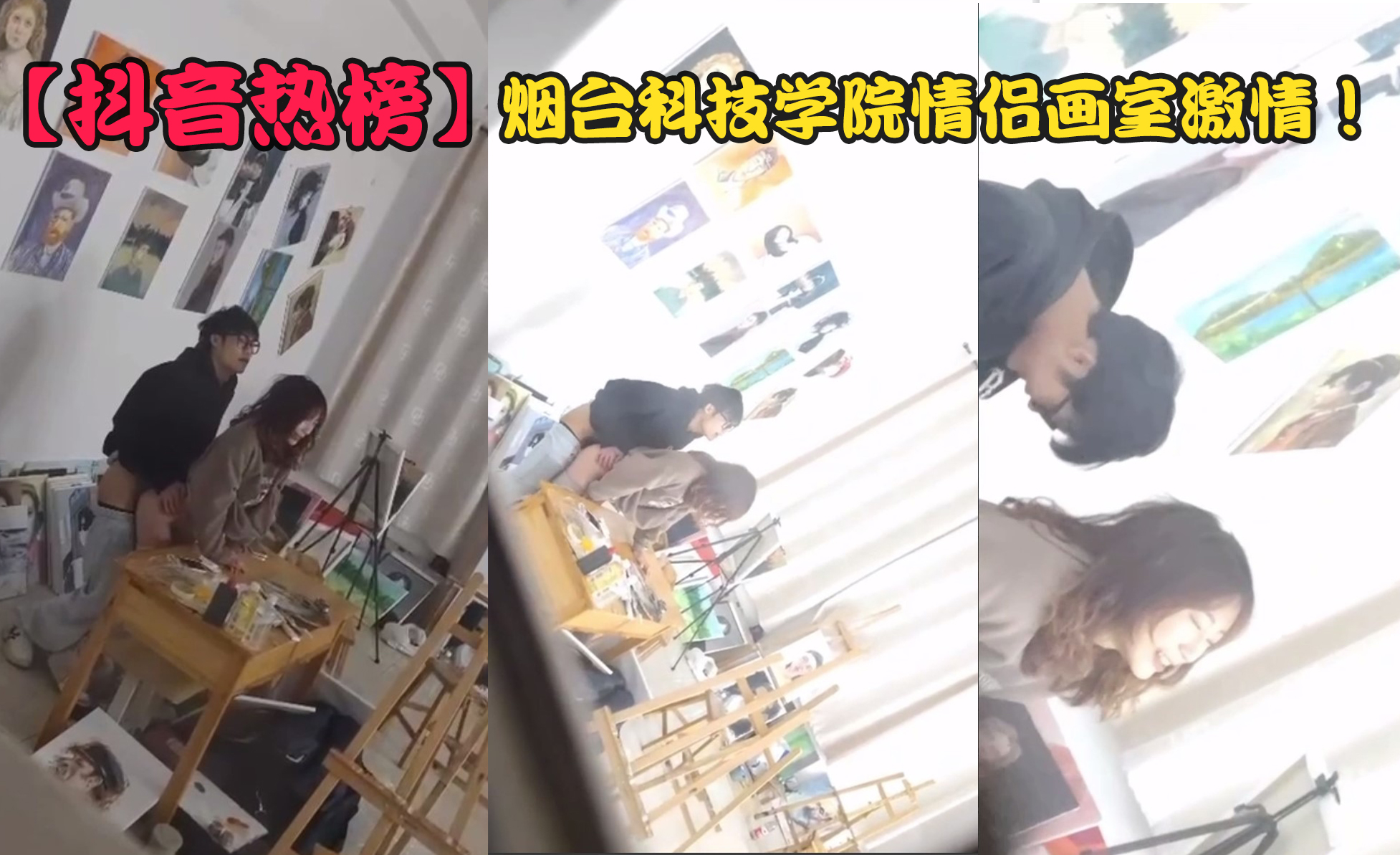 【抖音热榜】烟台科技学院情侣画室激情做爱被偷拍!男主勇猛无敌 女主哭泣擦身 座椅一片狼藉!